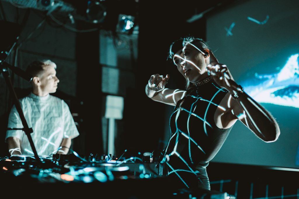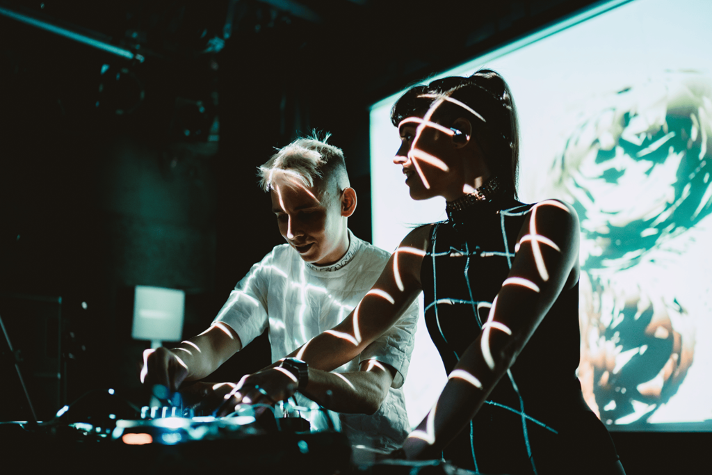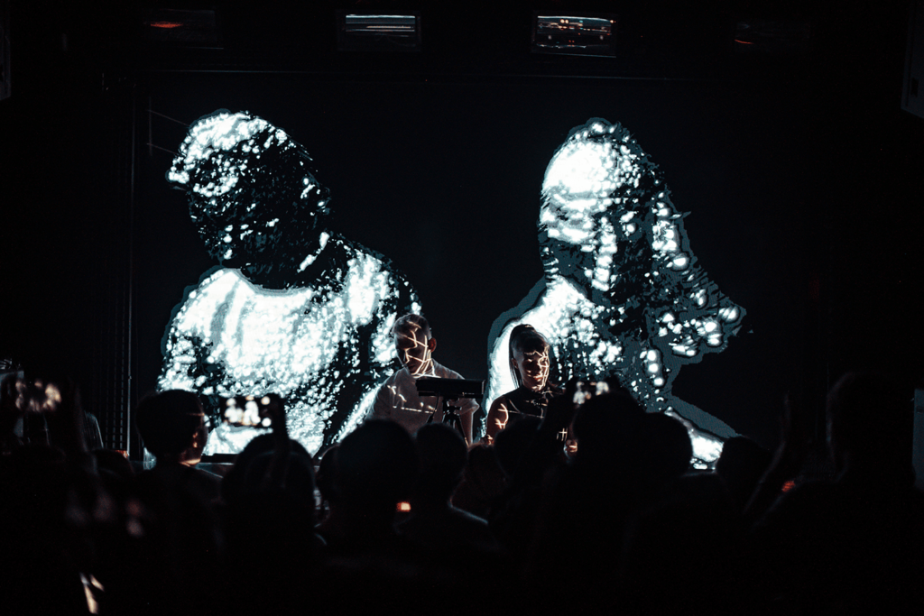 El dúo de productores Sinjin Hawke y Zora Jones, que en 2020 formó parte de la programación de L.E.V. con un directo dentro del universo virtual Planet L.E.V. Matadero, llega ahora en carne y hueso a esta cuarta edición del festival para presentar su último espectáculo audiovisual. En él, utilizan tecnología motion capture para traducir sus movimientos en sonido e imagen a tiempo real, controlando la música y convirtiéndose en avatares que se elevan frente al público en la gran pantalla, al ritmo de canciones de sus próximos álbumes.