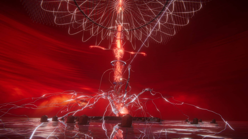 En esta narración audiovisual de ciencia ficción, el público asistente podrá entrar dentro del espacio virtual de la pieza a través de su dispositivo móvil e interactuar con otros visitantes en la escena que muestra la instalación, permitiendo hasta 50 participantes de manera simultánea.