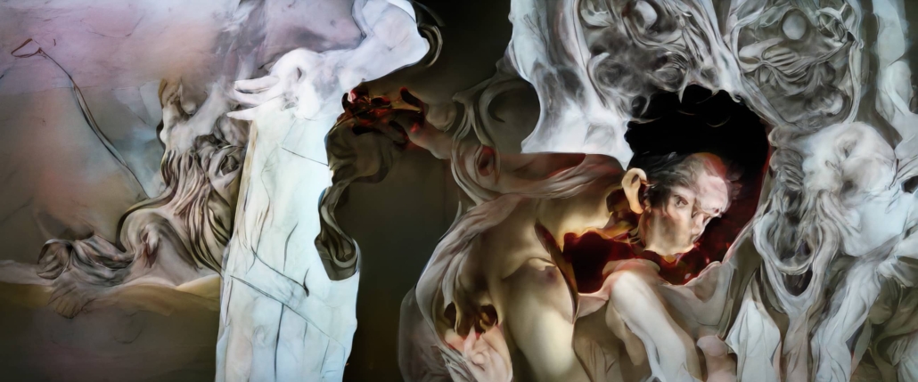 La sección VORTEX de L.E.V. Matadero mostrará dos de sus experimentos audiovisuales en torno a la inteligencia artificial: HYSTERESIS, que teje de manera íntima un entramado transformador entre las proyecciones de dibujos abstractos del artista y la vigorosa coreografía del performer queer Tsuki, y TOUHA, vídeo musical experimental que explora paisajes abstractos extraídos del espacio latente. Ambos, acompañados por la música de OVAL.