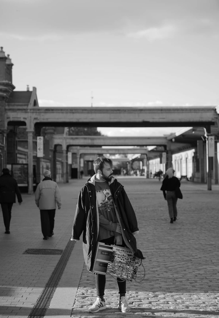 Carlos Bravo es instrumentista, artista sonoro y visual, desarrollador de instrumentos (hardware) e investigador. Su proyecto Cýra nace con el fin de materializar la trayectoria de Verbose en un formato experiencial. Para esta performance audiovisual, fruto de la experimentación del artista con grabaciones de campo electromagnéticas y con la técnica pixel mapping, construyó su propio equipo de iluminación, antes y durante su paso por el Centro de Residencias Artísticas de Matadero. La obra transita entre la precisión quirúrgica y la narrativa improvisada de espacios acústicos y lumínicos que se comunican mutuamente.